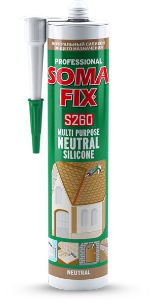 SomaFix neutriális szilikon színtelen 280ml (S260) Termékinf ormáció: Egykomponensű , rugalmas, oldószer mentes, 100% szilikon. A levegő nedvességtartalmától kikeményedik. Kül-és beltéren egyaránt alkalmazható, rugalmas, UV-álló és vízzáró, nem festethető. Padlólapok, csempék, és fali párkányok kötőanyagaként használható. Alkalmas PVC ablakok és ajtók, csempe és kerámia illesztések tömítésére, víz, zaj és por elleni szigetelésére. Használata kifejezetten ajánlott lúgos jellegű felületeken, úgy, mint beton, malter, habarcs, cement, zománc, klinker-és egyéb téglák, festett faanyagok és műanyagok. Könnyű felvinni, erősen tapad. Kiváló hatásfokkal ragasztja össze a padlólapokat, csempéket, faanyagokat, ajtókat, ablakokat, paneleket és párkányokat. Továbbá fa bútorokhoz, lépcsőzetek, illetve fa díszítések rögzítésére és felszerelésére. Száradás után nem ragadós a felszíne. Pisztollyal könnyen kinyomható. Nem sárgul. Zsugorodása