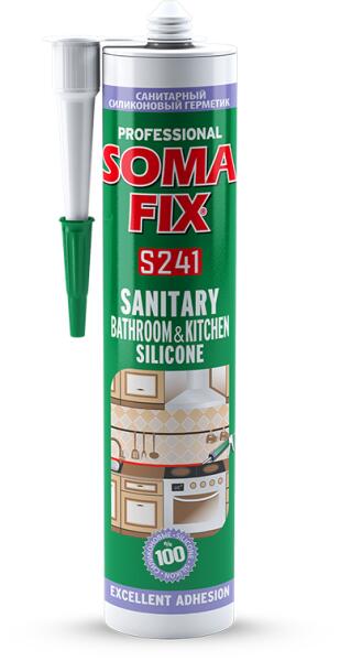 SomaFix szaniter szilikon fehér 280ml (S241) Termékinf ormáció: Egykomponensű , rugalmas, savas szilikon tömítő, fürdőszobai és általános használatra egyaránt alkalmas. A levegő nedvességtartalmától szobahőmérsékleten kikeményedik, rugalmas vízzáró szilikonréteget képez. Ellenáll a penészedésnek, gyorsan ragadás-mentessé válik. Padlólapok, csempék, és fali párkányok kötőanyagaként használható. Fürdő, mosogató, kád, csempe és kerámia illesztések tömítésére, víz és por elleni szigetelésére. Könnyű felvinni, erősen tapad. Száradás után nem ragadós a felszíne. Pisztollyal könnyen kinyomható. Nem sárgul. Zsugorodása